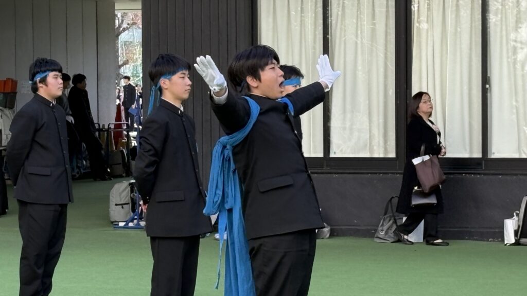 先日、本団は受験生壮行会を行いました。受験生壮行会では大学受験を迎える高校3年生の先輩方に向けてエールを送りました。